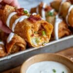 These Jalapeno Popper Egg Rolls are a crispy, flavorful appetizer combining the creamy richness of cream cheese and sharp cheddar with spicy jalapenos and smoky bacon, wrapped in crunchy egg roll wrappers and deep-fried to golden perfection. Served with ranch dressing for dipping, they make a perfect party snack or appetizer.