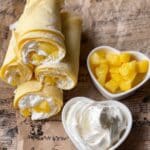Keywords: mango crepe roll, whipped cream crepes, mango dessert, French crepes, easy crepe recipe