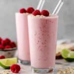 This refreshing Mango Raspberry Smoothie with Chia Seeds is a vibrant and nutritious blend perfect for a quick breakfast or energizing snack. Combining frozen mango and raspberries with dairy-free yogurt and almond milk creates a creamy texture packed with vitamins, antioxidants, and fiber. The addition of chia seeds and protein powder enhances its nutritional profile, providing sustained energy and a boost of protein, while the lime juice adds a zesty brightness. Sweeten naturally with honey or a date if desired.