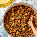 This Mexican Picadillo Recipe pairs perfectly with homemade red rice and warm corn or flour tortillas. I also like serving it alongside a simple cucumber salad or refried beans to make the meal complete and hearty.