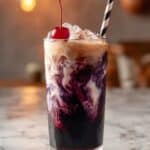 Keywords: Midnight Malibu Dirty Soda, coconut cream soda, blackberry soda, Dr Pepper cocktail, non-alcoholic drinks, creamy soda float