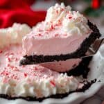 Keywords: No bake peppermint pie, Christmas dessert, Oreo crust pie, peppermint candy pie, holiday no bake pie