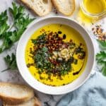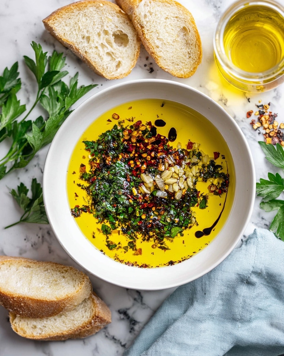 A flavorful and easy-to-make Olive Oil Bread Dip combining cold-pressed extra virgin olive oil with aromatic herbs, spices, garlic, and aged balsamic vinegar, perfect for dipping fresh bread or drizzling over salads and appetizers.