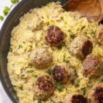 One Pan Chicken Meatballs with Garlic Parmesan Orzo Recipe