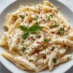 I always use freshly chopped parsley or basil when I serve this pasta. They add a vibrant freshness that balances the richness of the sauce. Sometimes, I’m lazy and sprinkle a little extra Parmesan on top too—because, why not?