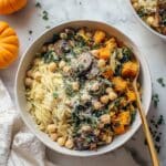This One Pot Fall Vegetable Orzo and Chickpeas recipe is a hearty, comforting dish perfect for cozy autumn evenings. Combining tender butternut squash, earthy cremini mushrooms, and nutrient-packed kale with protein-rich chickpeas and orzo pasta, this meal is flavorful and wholesome. Enhanced with aromatic garlic, sweet onions, and a hint of nutmeg, it all comes together with vegetable stock and Parmesan cheese for a creamy finish. It’s easy to prepare all in one pot, making it an ideal weeknight dinner that’s both satisfying and simple.