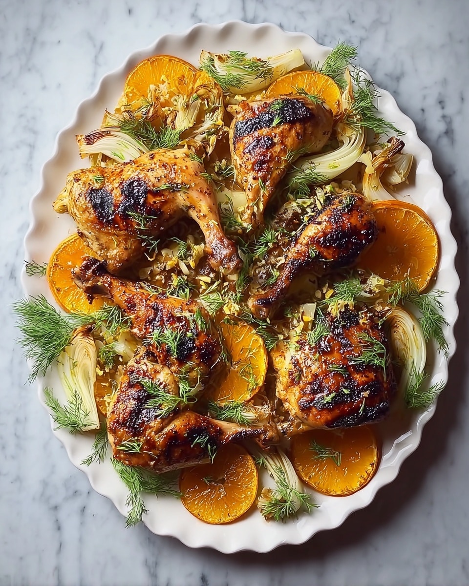 For special occasions, I like plating the chicken pieces atop the roasted fennel and orange slices, with the pan sauce drizzled over. It’s not only stunning visually but also invites everyone to enjoy a bit of everything in each bite. For a festive touch, add a few edible flowers or microgreens on top to impress your guests.