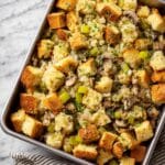 For a festive dinner, I’ve baked this dressing in individual ramekins with a tiny sprig of fresh thyme or rosemary on top as a garnish. It not only looks charming but makes serving easy and elegant, great for entertaining friends or family gatherings.