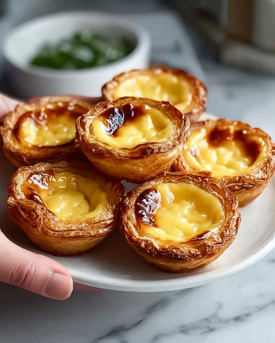 For special occasions, I like to serve Pastel de Nata on a rustic wooden board with fresh berries and a small drizzle of honey nearby. It’s a delight to the eyes and unexpected for a custard tart. Another fun idea is mini tart versions in cupcake liners for parties — they’re super cute and easy to handle.