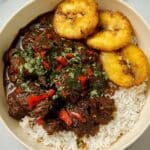 Return the steak to the pan with the veggies, then add bay leaves and 1 to 2 cups of water—enough to come about halfway up the meat, depending on how saucy you want it. Stir in the optional browning or burnt sugar if you’re aiming for that deep color. Lower the heat to medium-low and cover the pan. Let the mixture simmer gently for about 20-30 minutes, stirring occasionally, until the meat is tender and the sauce has thickened slightly. Taste and adjust seasonings if needed—sometimes I add a splash more Maggi or a pinch of extra black pepper here.