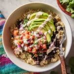 One of the best parts about this Quinoa Black Bean Burrito Bowls Recipe is how easy it is to tweak. I love making it my own depending on what’s in season or what I’m craving that day.