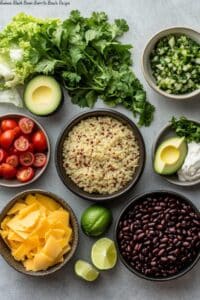 - Optional toppings: Grated cheddar or jack cheese, sour cream or Greek yogurt, pico de gallo or salsa, diced seeded tomatoes, hot sauce or sriracha, sliced avocado, guacamole, corn — mix and match for your perfect bowl.