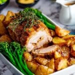Keywords: roast pork, pork shoulder, crispy crackling, homemade gravy, British roast, Sunday roast