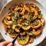For special occasions, I sometimes plate the roasted squash in a single layered circle on a large platter, drizzle the brown butter sauce with a thin brush for an artistic look, and sprinkle pepitas and parsley with intention. It’s a simple but elegant presentation that gets compliments every time. I’ve even tried serving it in individual ramekins topped with a few microgreens for a fancy dinner party.