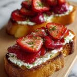 Enjoy a delightful and elegant Roasted Strawberry Whipped Ricotta Toast, perfect for a sophisticated breakfast or light snack. This recipe features juicy, caramelized strawberries roasted to perfection and topped on crunchy toasted bread with creamy, whipped ricotta enhanced by olive oil and fresh thyme for a harmonious blend of sweet and savory flavors.