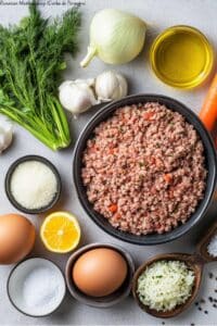 - Prepare the meatball mixture: In a large bowl, combine ground pork, 1 large egg, chopped dill, chopped parsley, uncooked rice, breadcrumbs, salt, and black pepper. Mix thoroughly until all ingredients are evenly incorporated. Set aside to allow flavors to meld.