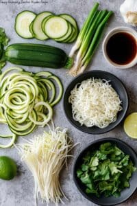 I don’t recommend freezing this recipe because zucchini noodles tend to get watery and mushy after thawing. If you want to freeze, go for the rice noodles and sauce separately, and make fresh zucchini noodles when you’re ready to eat.