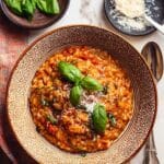 Reheating is simple—use the stove over low to medium heat and stir occasionally until heated through. If it’s thickened up too much, just add a splash of broth or water to loosen it up, and it’s good as new!