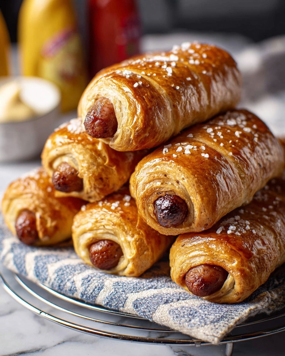 For parties, I like arranging these Soft Baked Cheesy Pretzel Dogs on a wooden board, alternating with colorful bowls of assorted mustards, cheese sauces, or spicy aioli for dipping. You can even slice them into bite-sized pieces and serve them as an appetizer with cocktail picks—a big hit at my last game day!