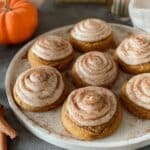 Keywords: pumpkin cookies, vegan cookies, cinnamon frosting, fall desserts, soft cookies, pumpkin spice, vegan dessert