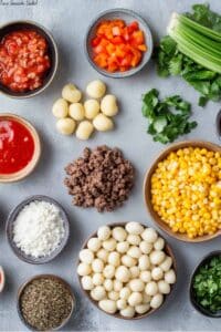 Each ingredient plays a role to keep this Taco Gnocchi Skillet Recipe perfectly balanced — hearty, a little smoky, and with just the right kick. When you’re shopping, look for fresh vegetables and quality canned goods to maximize flavor. Also, pre-made gnocchi saves a ton of time and feels fancy without extra fuss.