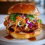 This sandwich is fantastic for weekend lunches, casual dinners, or whenever you want to impress friends with something a bit adventurous but totally doable at home. If you love crispy chicken with a little Southeast Asian flair, this Thai Fried Chicken Sandwich Recipe is absolutely worth trying—trust me, it’s a game changer!