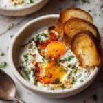 Turkish Eggs, or Çılbır, is a traditional Turkish breakfast dish featuring poached eggs served atop a creamy, tangy herbed yogurt and finished with a warm, spiced butter sauce. This comforting and flavorful recipe combines velvety Greek yogurt infused with fresh herbs and garlic, perfectly poached eggs, and a luscious Aleppo pepper butter drizzle. Served with crusty bread or pita, it’s an elegant yet simple dish that elevates your morning meal.