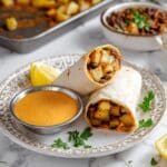 For a fun twist when hosting, I like to turn these Vegan Black Bean and Roasted Potato Burritos with Chipotle Cashew Sauce Recipe into a burrito bowl. Just pile all the fillings into a bowl, drizzle with sauce, top with cilantro and avocado, and let everyone customize with salsas and hot sauce. It’s perfect for a casual party or when you don’t want the extra carbs from the tortilla. Alternatively, wrapping each burrito in foil and serving them buffet-style lets guests grab and go with ease.