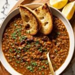 Start by soaking the brown lentils overnight — this helps them cook evenly and get that creamy texture we want. When you’re ready, drain and rinse well to remove any dust. This step might seem mundane, but trust me, it makes a world of difference in texture.